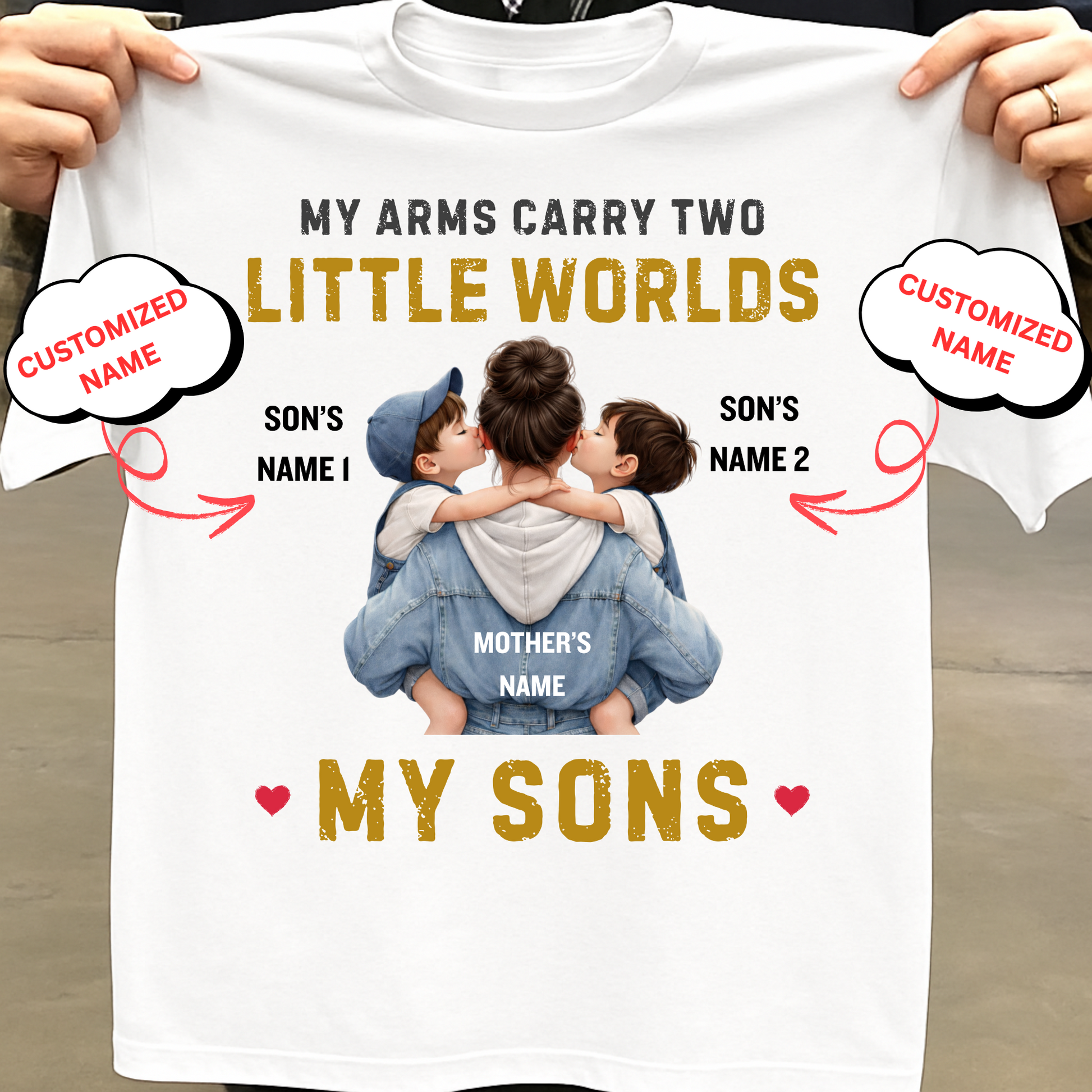 CUSTOMIZED-MY ARMS CARRY TWO LITTLE WORLDS (MOTHER-SONS) CLASSIC T-SHIRT