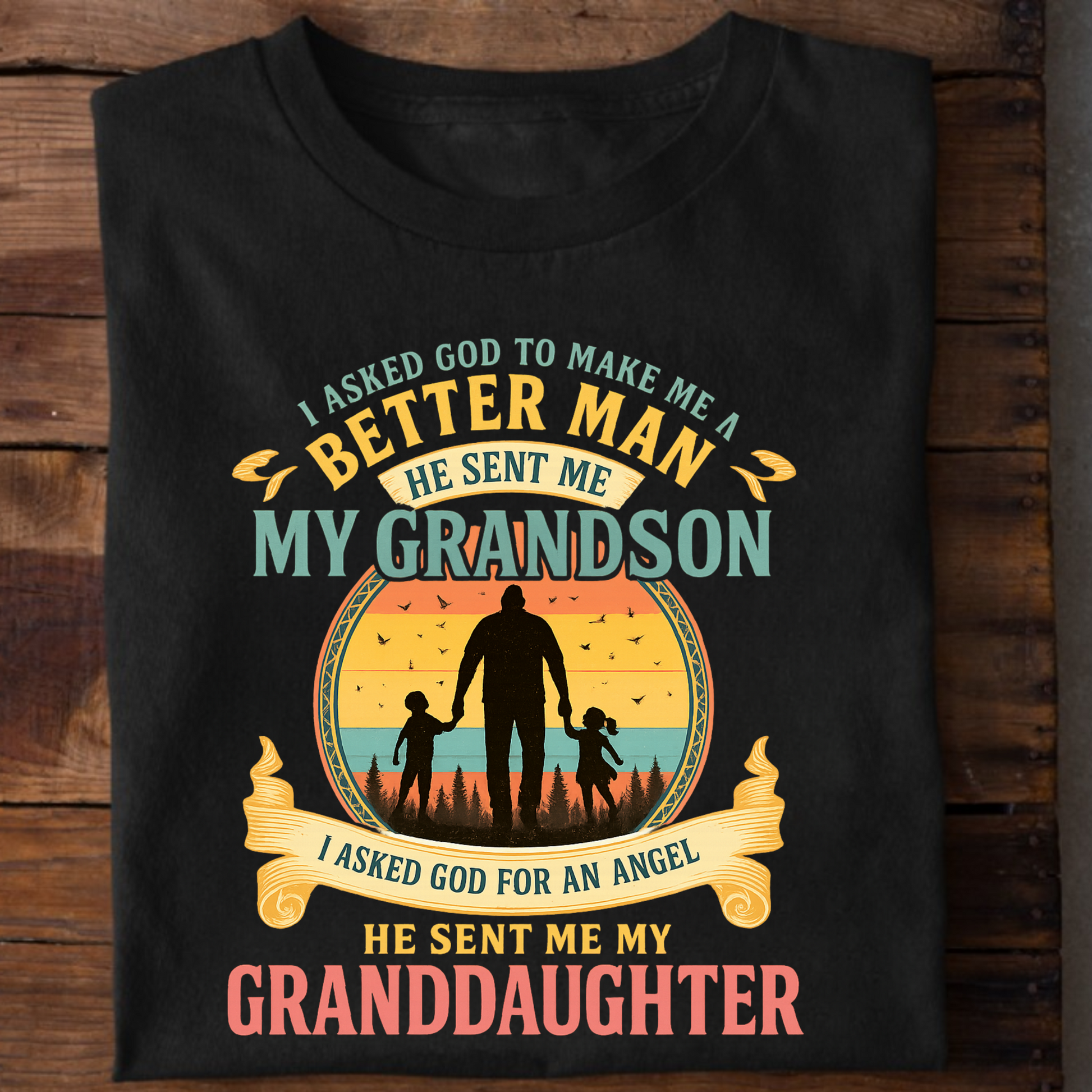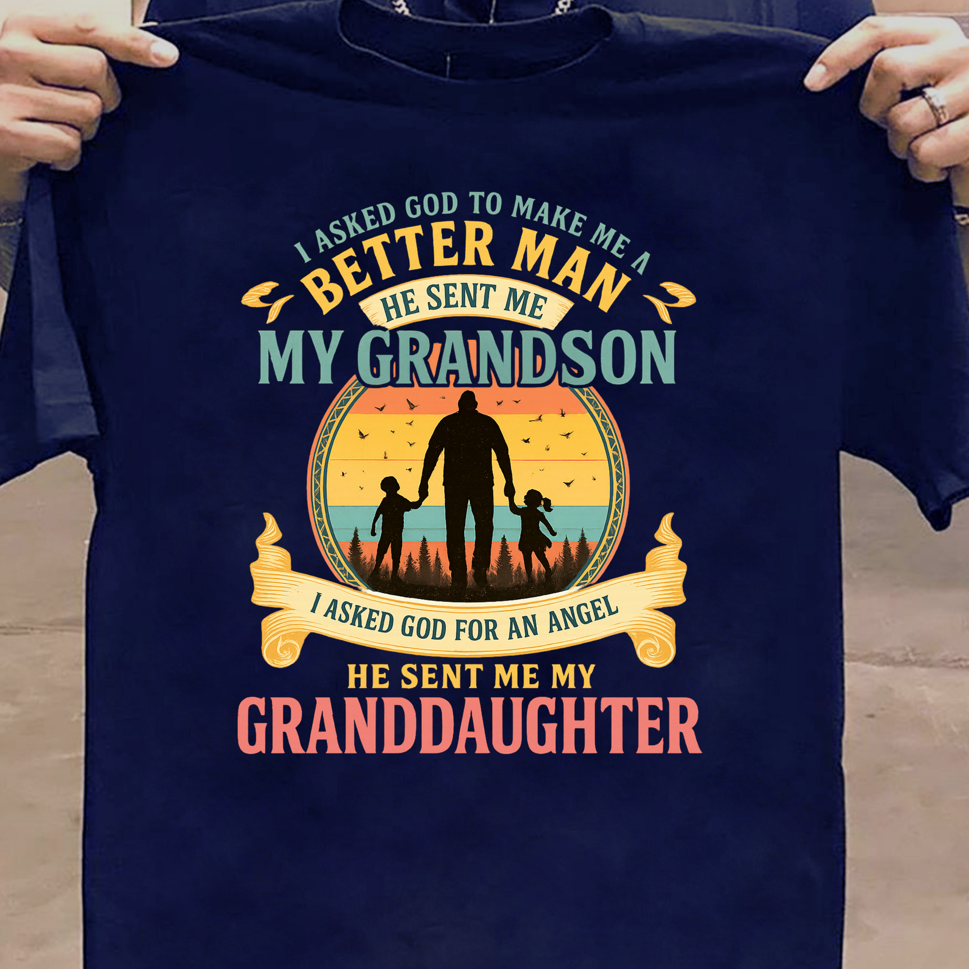 FOR BETTER MAN HE SENT ME MY GRANDSON AND FOR ANGEL HE SENT ME MY GRANDDAUGHTER CLASSIC T-SHIRT